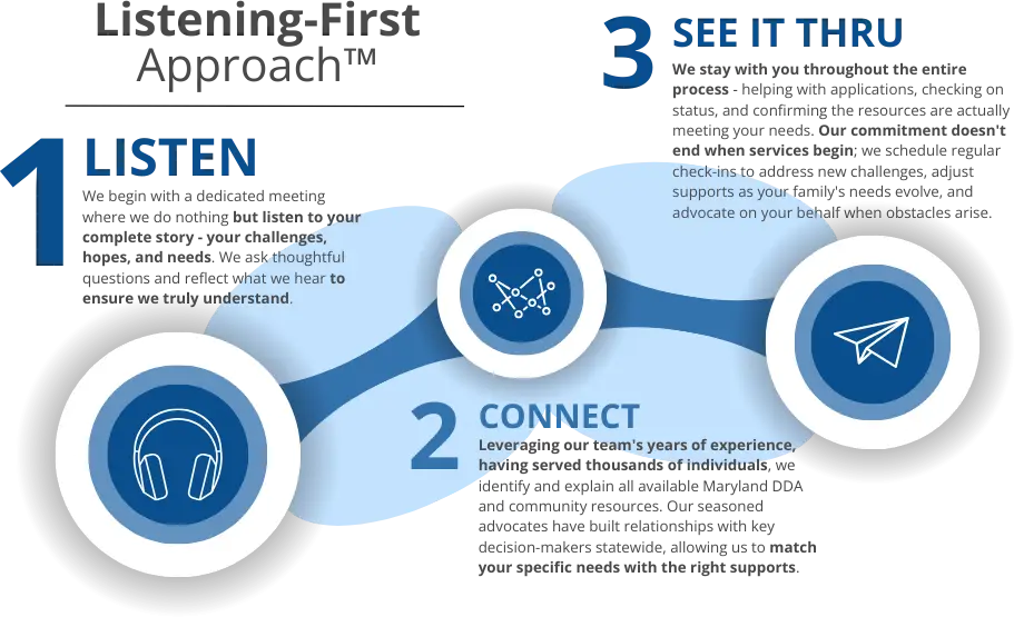 Coordinators of Community Services (CCS), also known as Targeted Case Managers, play a vital role in supporting individuals with intellectual and developmental disabilities and their families. They help ensure access to the services and resources necessary for independence, health, safety, and meaningful community involvement. We do this through our LISTENING-First Approach℠.